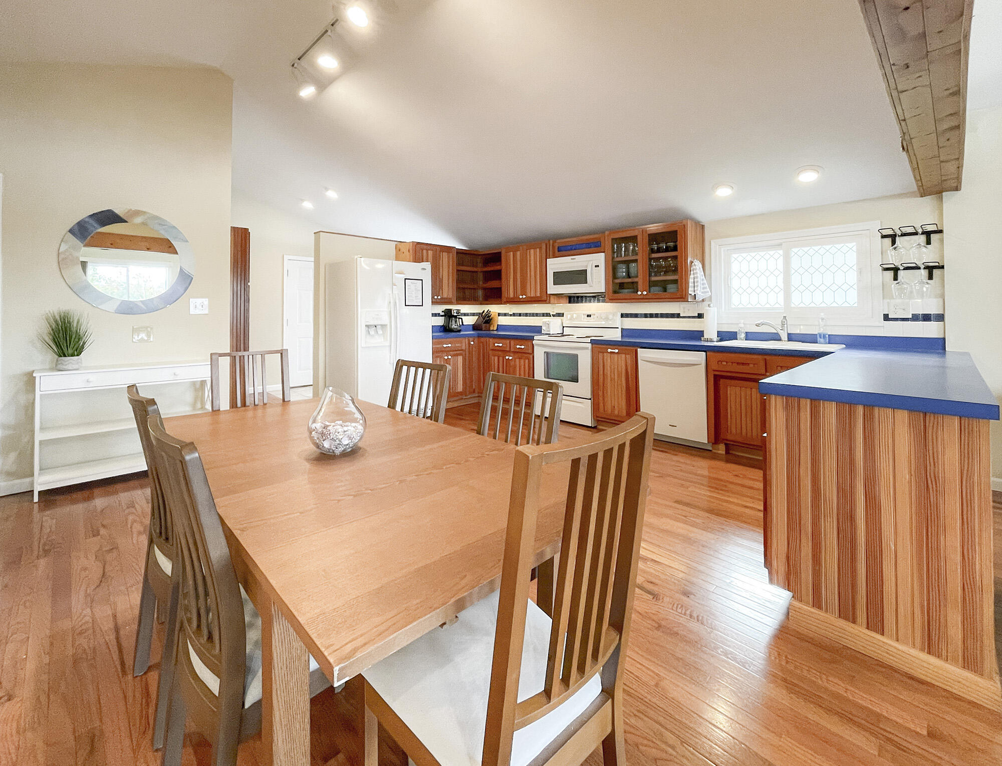 The 3 bedroom, 2 bathroom, 1700 sq./ft. house boasts an open floor plan with vaulted ceilings and beautiful lake views. The spacious living room is complete with chairs and a large sectional sofa, a 55 inch smart TV with a Sonos sound-bar and a cozy gas fireplace. Each bedroom is equipped with a Nectar memory foam mattress.